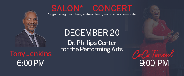TL;DR: The brunch in November was awesome. Didn’t make it? You surely missed out. But there’s an opportunity to make up for it in December. We’ll be at the Dr. Phillips Center for the Performing Arts on the evening of Friday, December 20 for a conversation with Tony Jenkins, Florida Blue Market President (Central FL) followed by a concert with CeCe Teneal. Access discounted reception + concert tickets for $105 using code 15BA05 by Friday, December 6. Buy tickets (now!!!!) because they will sell out and I want to see you there!